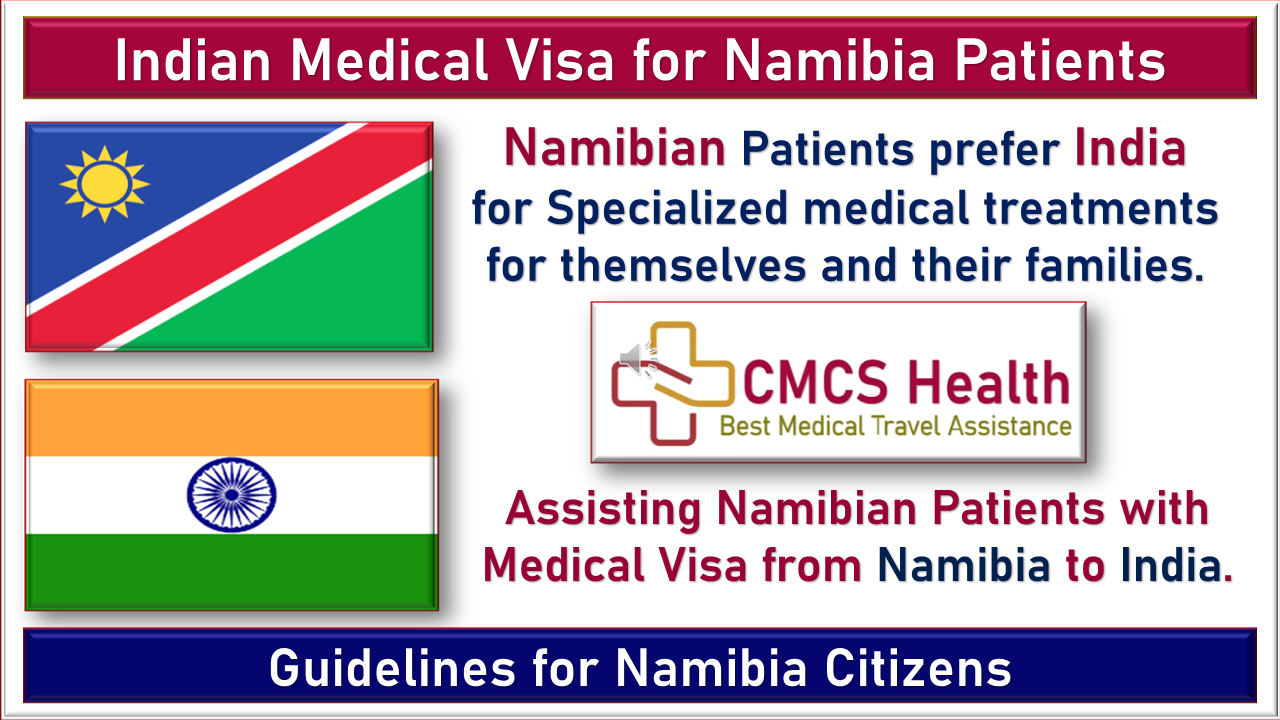 Namibian patients are granted medical visas from Namibia to India if the sole purpose of their visit is to get medical treatment for themselves or to accompany a Namibian patient as their medical attendant. Namibian Patients chose India for specialized medical treatment for themselves and their family members because of the comparatively lower cost and quality of healthcare services in India.