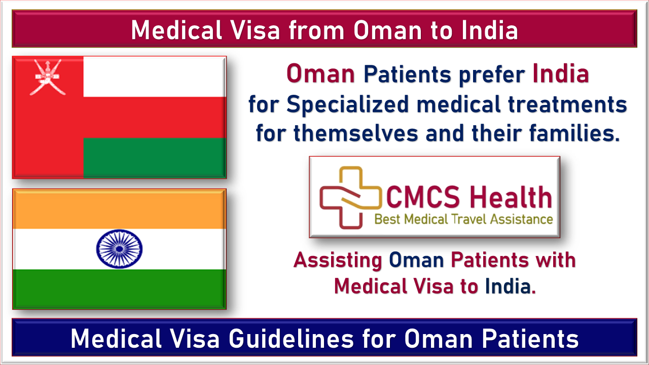 Oman patients are granted medical visas from Oman to India if the sole purpose of their visit to India is to get medical treatment for themselves or to accompany an Oman patient as their medical attendant. Patients from Oman chose India for specialized medical treatment for themselves and their family members because of India's comparatively lower cost and quality of healthcare services.