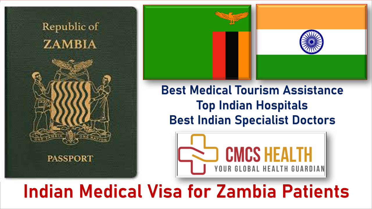 Zambia Patients seeking affordable and best-quality medical treatment in India must get Medical Visas to visit India. A Zambian Patient coming to India for Medical treatment will be granted a Medical Visa (MED). At the same time, the co-travelers with the Zambian patients will be given the Medical Attendant Visa (MED X). CMCS Health, the best Medical Tourism Provider Agency in India assists Zambian patients in procuring Medical Visas for coming to India.